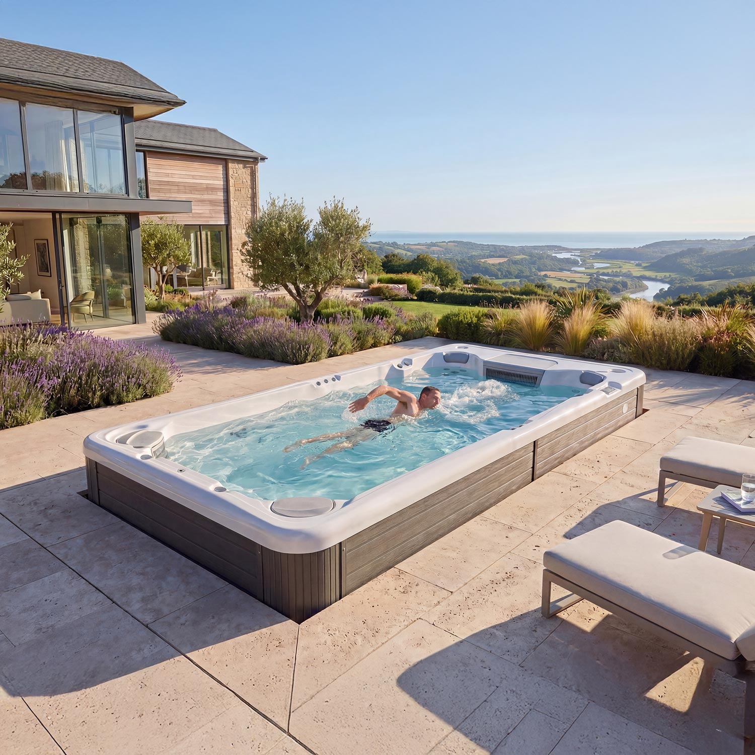 A Wellis swim spa offers the perfect combination of luxury, relaxation, and fitness. Enjoy the benefits of hydrotherapy and aquatic exercise in a spacious, high-quality swim spa designed for ultimate comfort and wellness.